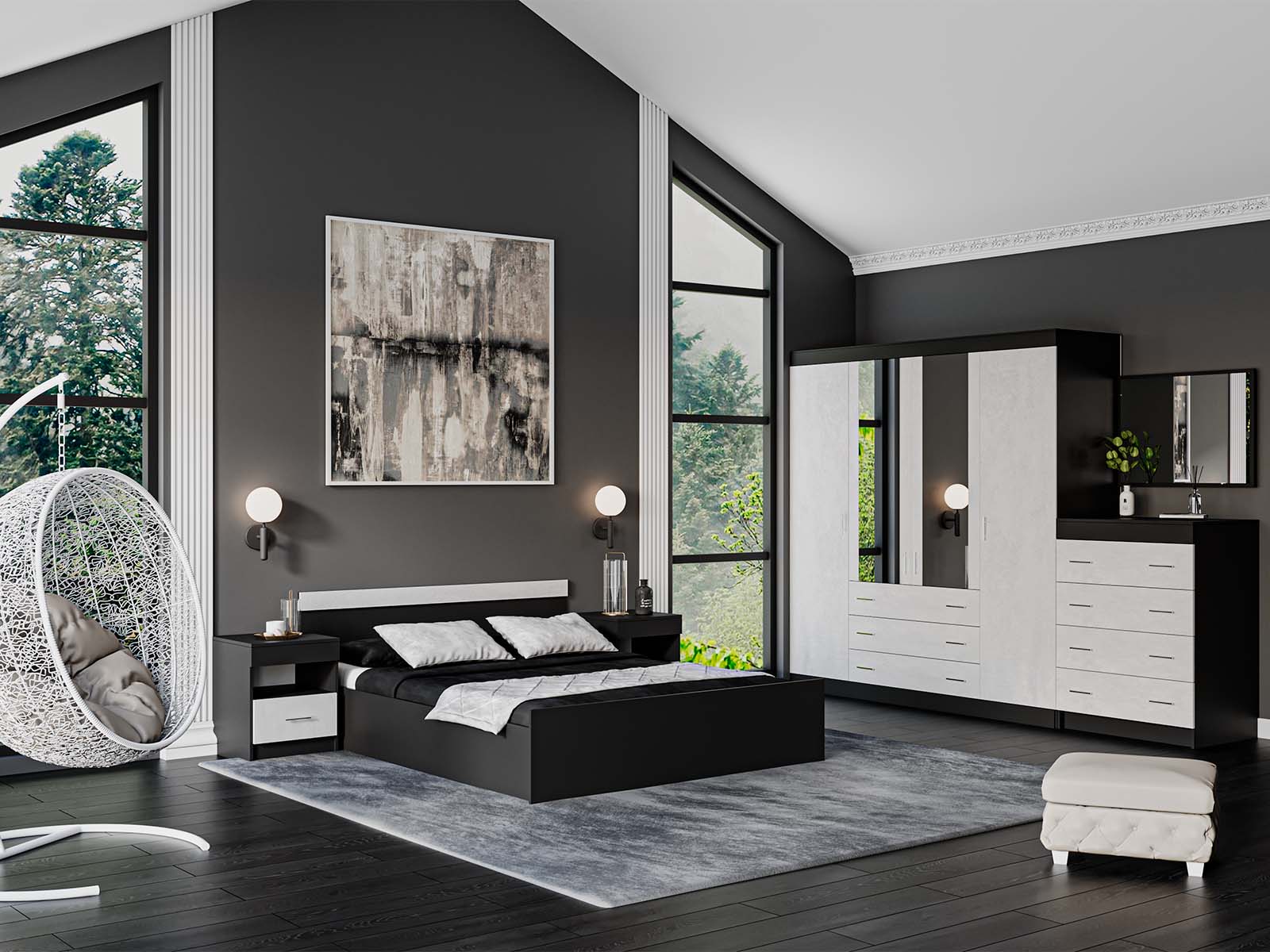 Модульная спальня Терра — современный индустриальный стиль с практичным комфортом.