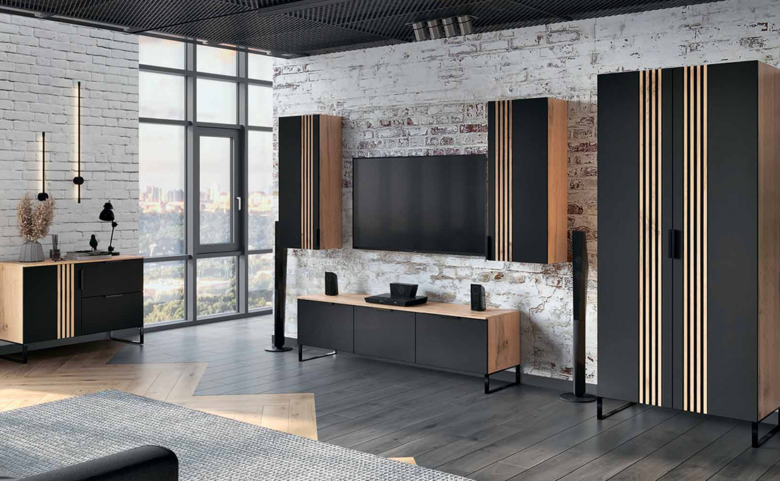 Широкий выбор модулей позволяет создавать индивидуальные композиции: от компактных решений до масштабных систем хранения. Благодаря разнообразию элементов коллекцию можно адаптировать к любому размеру комнаты и стилю интерьера. - Сдержанный современный стиль. Цвет дуб аппалаччи с текстурой кварцита, прямые формы и деревянные акценты создают эстетику минимализма с характером.