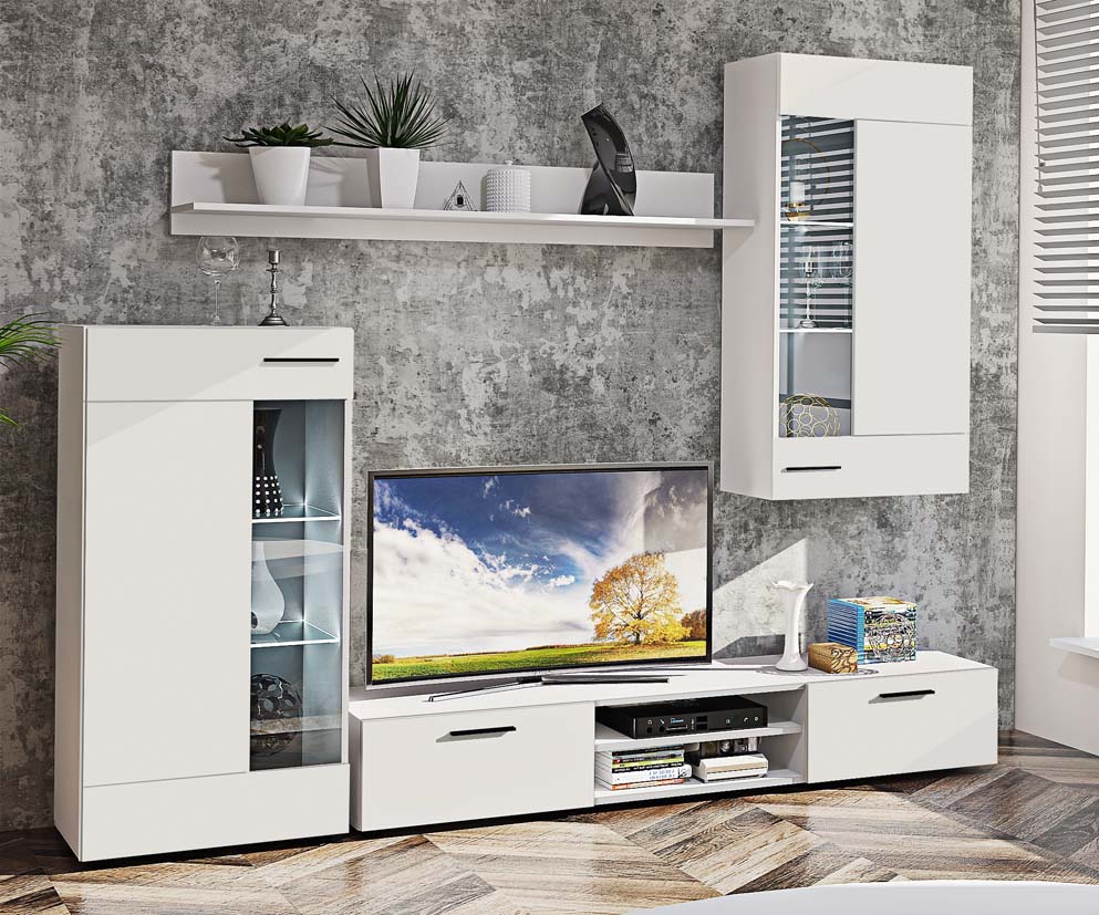 Модульная гостиная МС-4332 Эко Белый Глянец