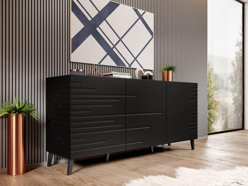 Широкий выбор модулей позволяет создавать индивидуальные композиции: от компактных решений до масштабных систем хранения. Благодаря разнообразию элементов коллекцию можно адаптировать к любому размеру комнаты и стилю интерьера. - Сдержанный современный стиль. Цвет черный, прямые формы и деревянные акценты создают эстетику минимализма с характером.
