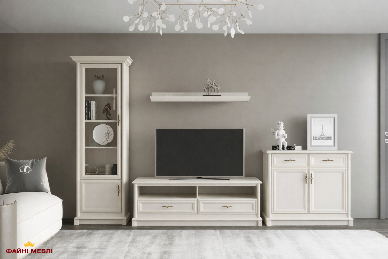 Модульная система Соната Нью — это набор разных элементов мебели (модулей), выполненных в едином цвете, дизайне и стиле. Из них вы можете собрать свой собственный комплект, учитывая индивидуальные особенности вашей комнаты: размеры, планировку и общий интерьер. Это как конструктор LEGO: модули — словно “кирпичики” (тумбу ТВ, комод, витрины, столы, полки). Они идеально сочетаются между собой, а большой выбор элементов позволяет подобрать и заказать именно ваш идеальный набор мебели — для гостиной.
