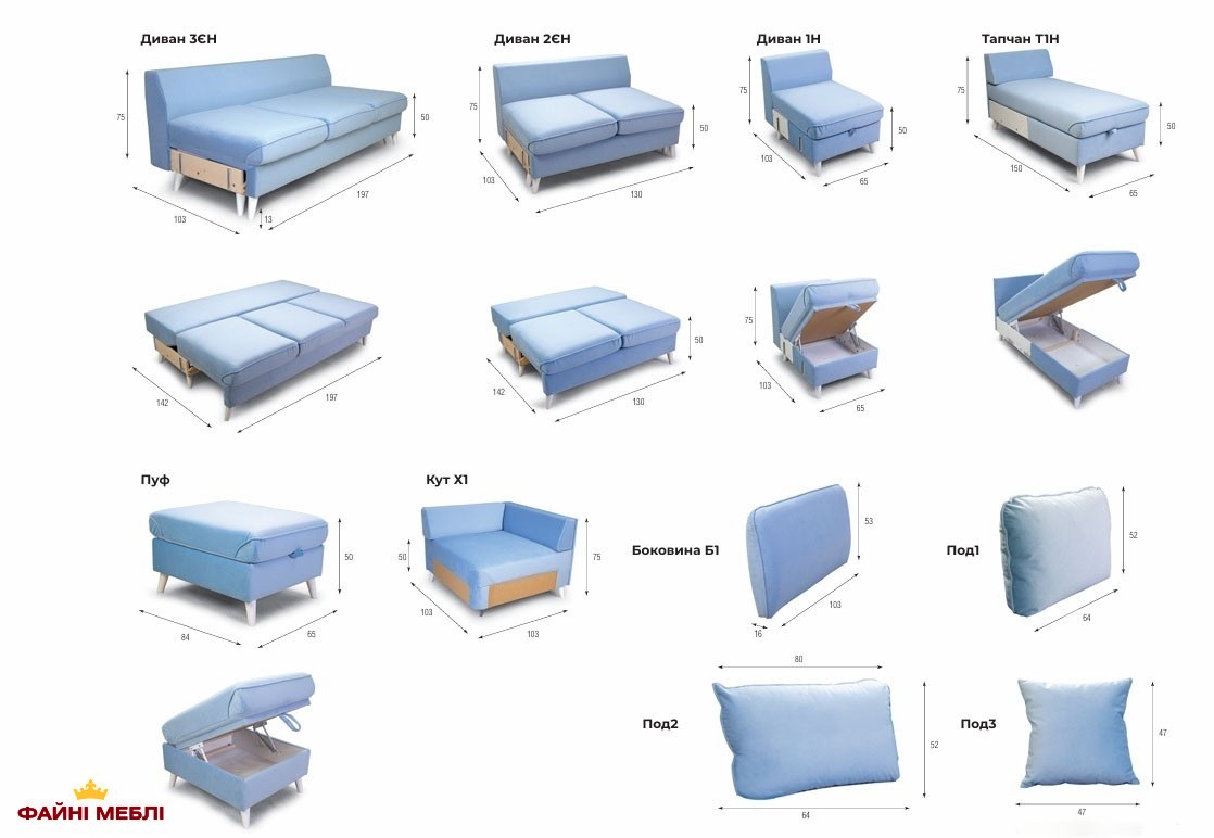 Модульная система или коллекция — это набор различных элементов мебели (модулей), которые имеют одинаковый цвет, дизайн и стиль, из которых вы можете подобрать свой комплект мебели с учётом индивидуальных особенностей вашей комнаты: размеров, дизайна. Это как конструктор LEGO, модули как кирпичики (боковины, диваны, тахты, подушки). Они идеально сочетаются друг с другом, а большой выбор модулей позволит вам выбрать и заказать ваш идеальный набор.