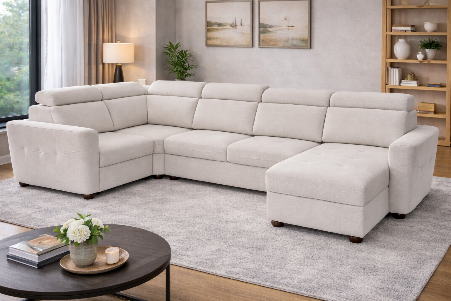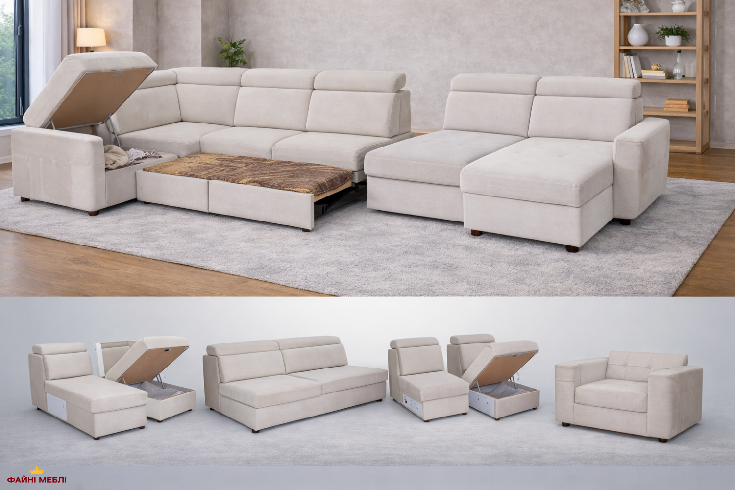 Модульный диван Милан — это сочетание современной эстетики, продуманного комфорта и функциональности, которая ощущается каждый день. Он создан для тех, кто хочет видеть в своей гостиной не просто диван, а стильный центр пространства, где приятно отдыхать, работать и принимать гостей. Модульная система позволяет легко адаптировать «Милан» под планировку вашей комнаты: меняйте конфигурацию, формируйте идеальный угол и обновляйте интерьер без лишних затрат. Лаконичный дизайн выглядит актуально сегодня и останется таким же через годы, гармонично дополняя как современные, так и классические интерьеры. Надёжность дивана заложена в основе: каркас из натурального дерева в сочетании с ламинированным ДСП обеспечивает прочность, устойчивость и долгий срок службы. Комфорт продуман до мелочей — пружинная «змейка», ППУ и синтепон создают сбалансированную посадку: диван мягкий, но хорошо держит форму и поддерживает тело как во время отдыха, так и сна. «Милан» раскладной и оснащён надёжным механизмом трансформации «софа», который быстро превращает диван в удобное спальное место без сложных движений. А встроенный короб для вещей добавляет практичности — пледы, подушки или постель всегда аккуратно спрятаны, освобождая пространство от лишнего.
