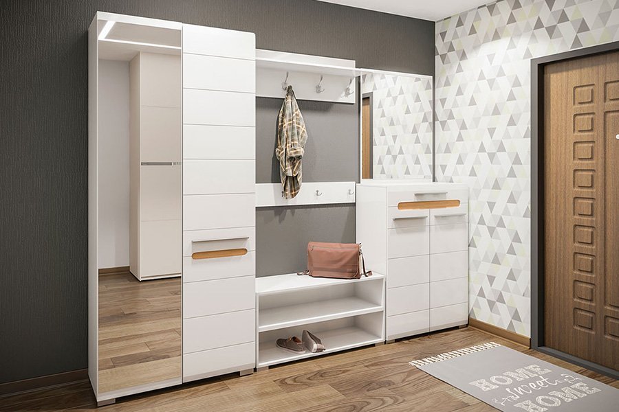 Модульная прихожая Мир Мебели Бьянко — гармония белого цвета и натурального дерева