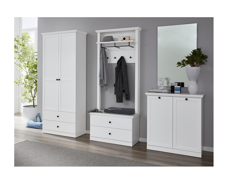 Модульная прихожая Mebelbos Брендсон изготовлена из качественных и надёжных материалов, рассчитанных на длительное использование. Корпус из ламинированной ДСП обеспечивает стабильность конструкции и устойчивость к ежедневным нагрузкам, а фасады из рамочного МДФ придают мебели выразительный и аккуратный внешний вид. Универсальный белый цвет создаёт светлую, тёплую атмосферу и легко сочетается с различными интерьерными стилями. Для открывания используются круглые металлические ручки чёрного цвета, которые служат стильным контрастным акцентом. Ящики оснащены роликовыми направляющими, обеспечивающими плавную и стабильную работу. Декоративная верхняя кромка и рамочные фасады подчёркивают элегантный характер коллекции. В состав модульной системы входят: вешалка, тумба, тумба для обуви и шкаф. Комплект поставляется с инструкцией и полным набором фурнитуры для монтажа.
