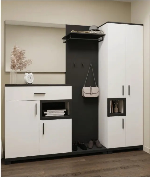 Каждый модуль продуман так, чтобы обеспечить удобное хранение одежды, обуви и аксессуаров без ощущения захламлённости. - Надёжные материалы и качественная фурнитура