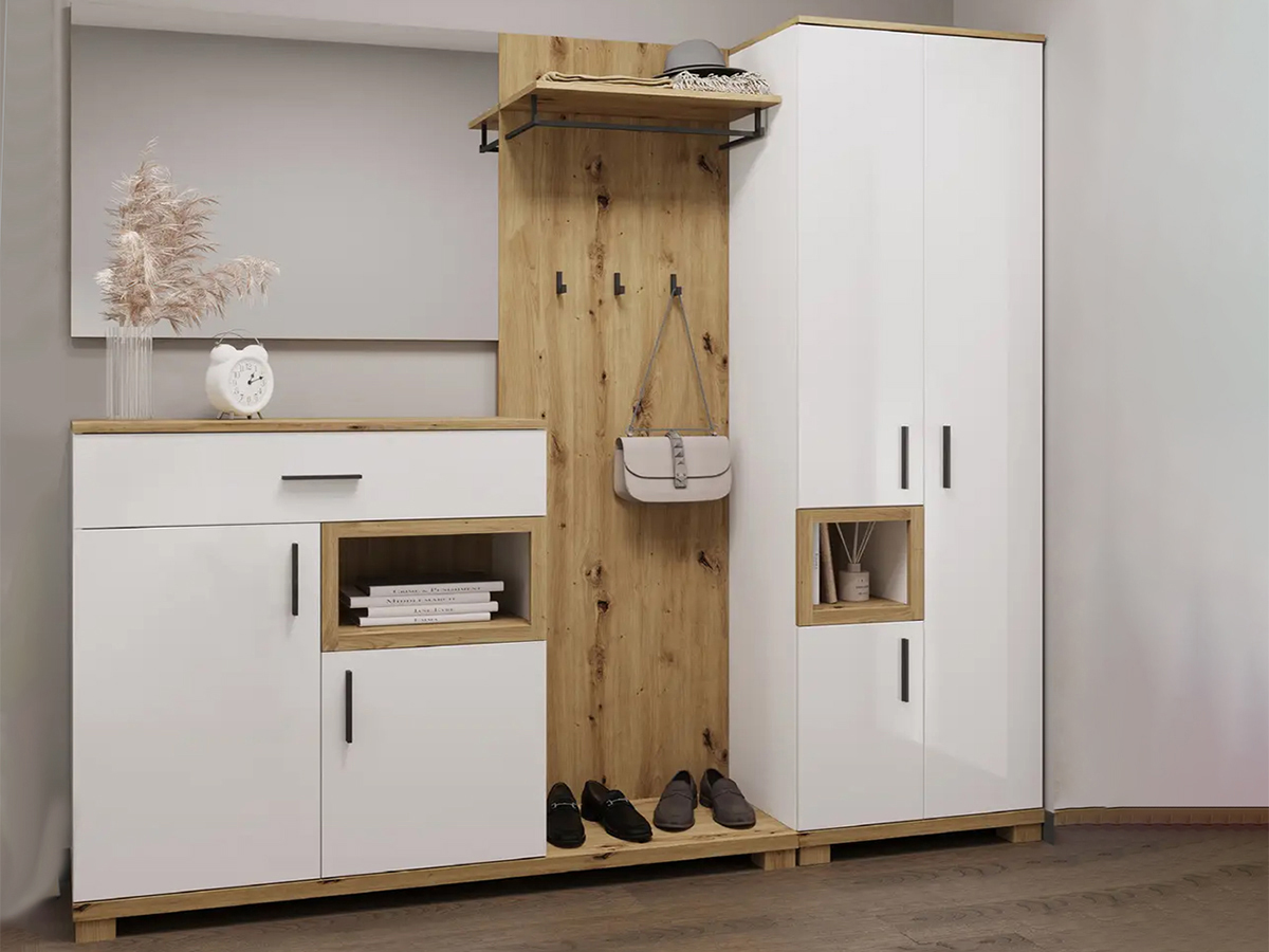 Модульная прихожая Сокме Монте Дуб артизан / Белый — светлая геометрия комфорта для современного дома