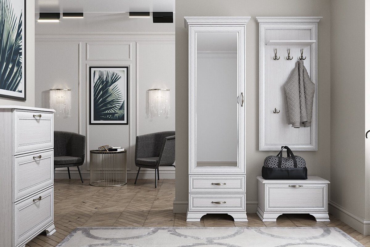 Модульная прихожая Mebelbos Тиффани — это изысканное сочетание классического стиля, светлой эстетики и продуманной функциональности. Коллекция создана для тех, кто ценит элегантные детали, гармоничные пропорции и ощущение уюта уже с порога. Нежный оттенок Вудлайн крем с текстурой натуральной древесины наполняет пространство светом, делает его визуально более просторным и тёплым. Утончённые рамочные фасады с лёгкой патиной, декоративные карнизы и массивные ножки формируют благородный образ мебели, который не теряет актуальности с годами. Тиффани — это прихожая, создающая атмосферу спокойствия, порядка и настоящего домашнего комфорта.