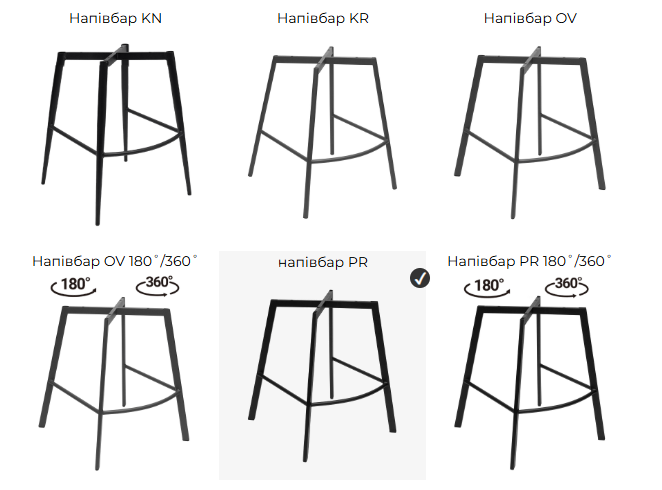 Каркас стула выполнен из прочного металла с покрытием устойчивой порошковой краской, которая защищает от коррозии и царапин. Сиденье выполнено из мягкого, приятного на ощупь материала — ткани или велюра высокой плотности, сохраняющего форму даже при длительном использовании. Обивка легко очищается, не выгорает на солнце и обладает повышенной износостойкостью. Стандартная опора полубар KR.