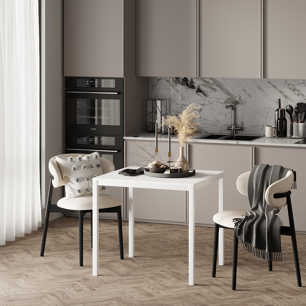 - Для небольшой кухни или квартиры-студии оптимальной будет модель размером 110–145 см — она компактна в сложенном виде и удобна для ежедневного использования.