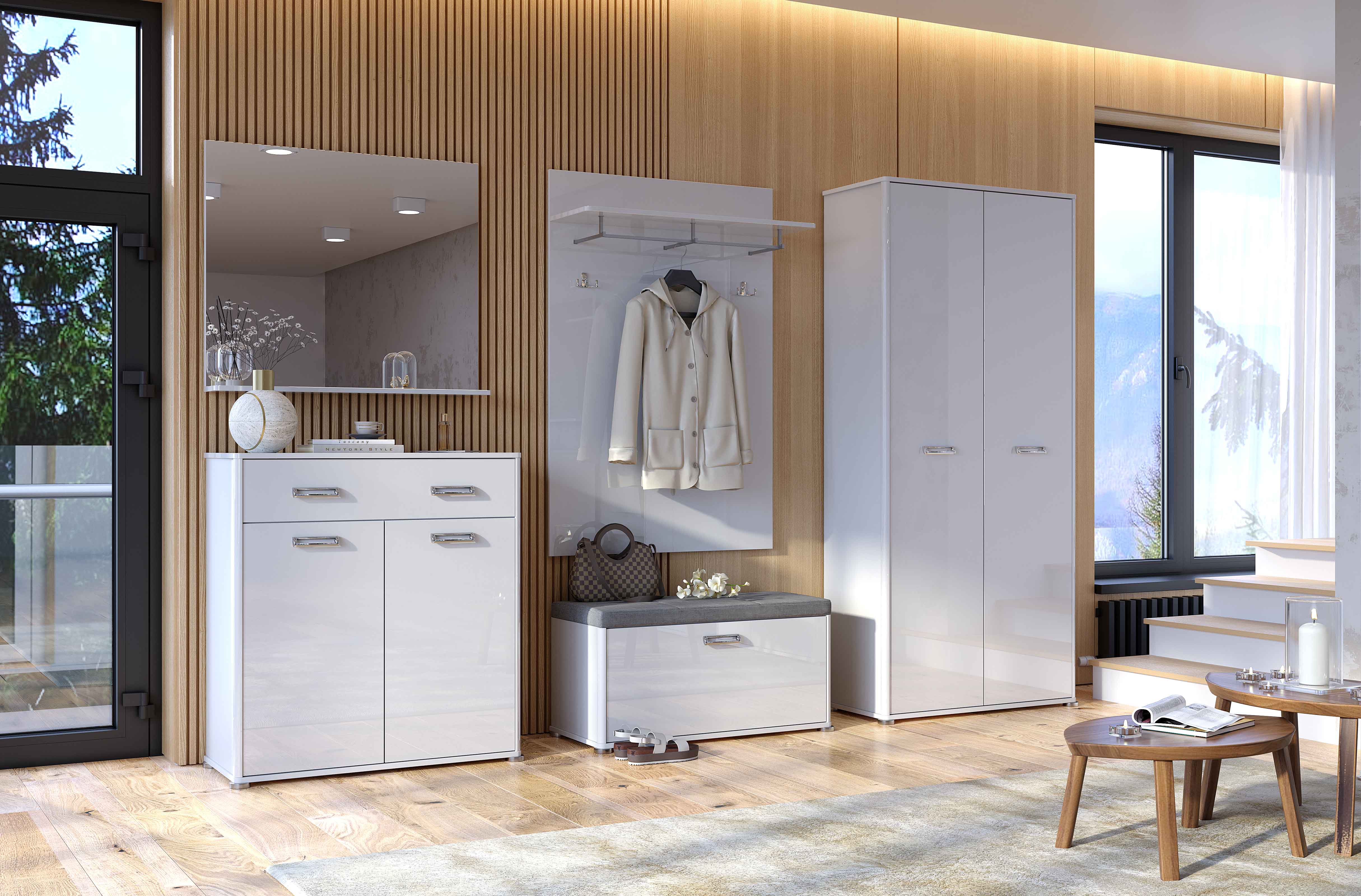 Модульная прихожая Миромарк Белла Белый глянец — свет, комфорт и безупречный внешний вид
