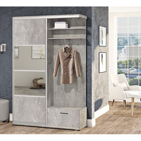 Функциональность. Шкаф с зеркальными вставками, вешалка, полки и тумба для обуви обеспечивают удобное хранение одежды, обуви и аксессуаров.