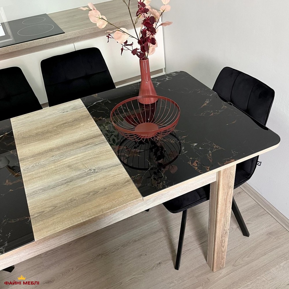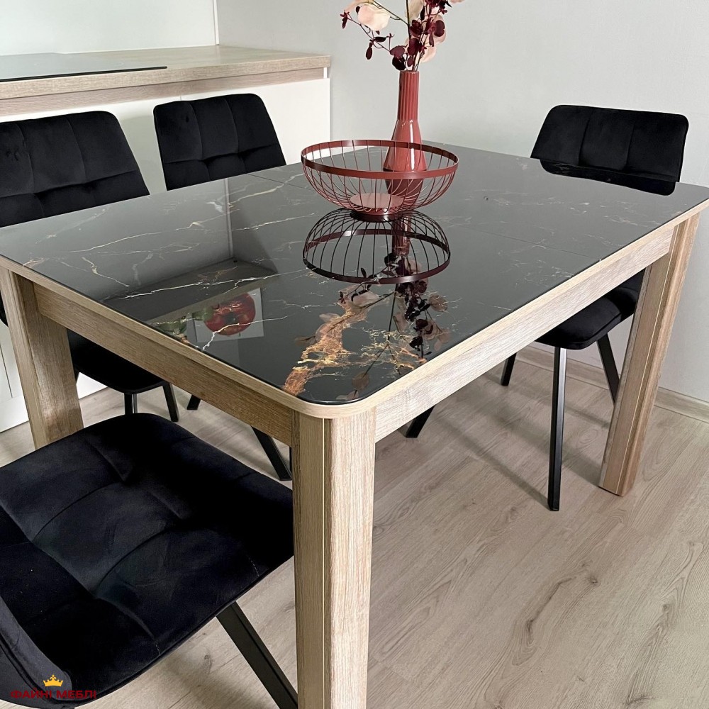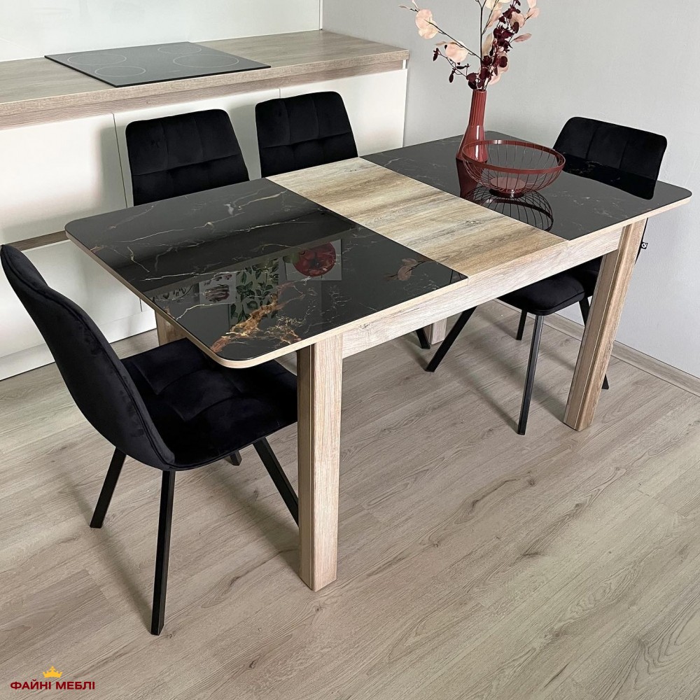 Стол изготовлен украинской фабрикой «Джем» — производителем современной мебели для дома. Предприятие специализируется на создании практичных, стильных и долговечных моделей для кухни, столовой и гостиной.