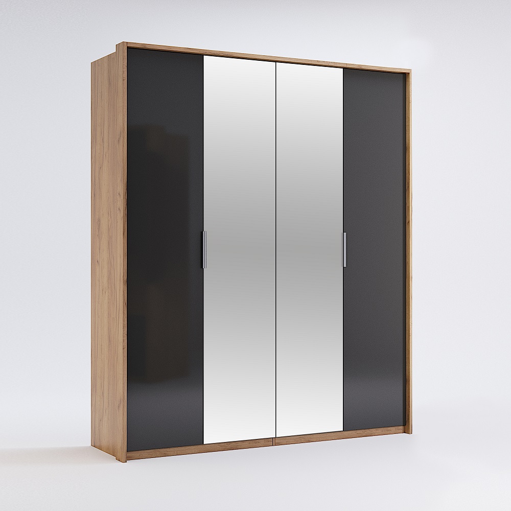 Шкаф 4дв с зеркалом Миромарк Луна 4 дверный дуб крафт 180 см