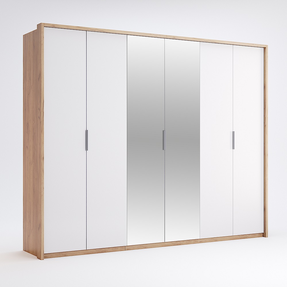 Шкаф 6Дв с зеркалом Миромарк Асти 6 дверный дуб крафт 275 см