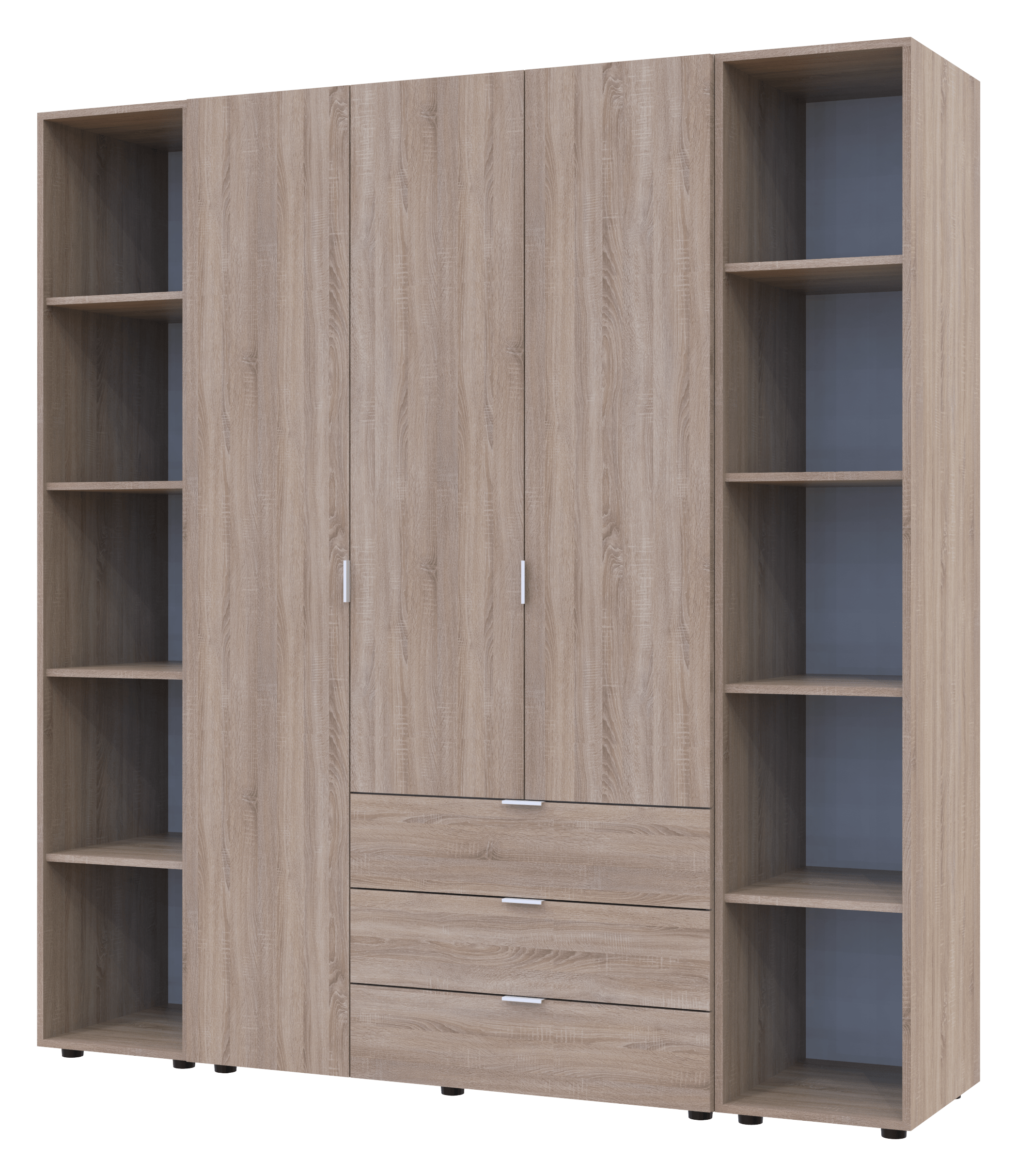 Шкаф Дорос Гелар дуб сонома с 2 Этажерками 3-х дверный 192,6 см