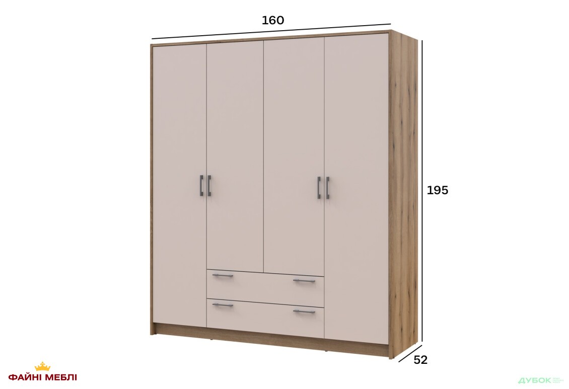 Шкаф Doros Ронди 4-дверный с ящиками 160 см Дуб Артизан / Кашемир