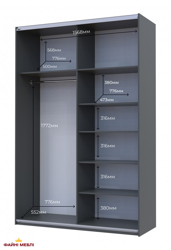 Отзыв о товаре Шкаф-купе с зеркалом Дорос G-Caiser графит/графит 2 дверный 160 см
