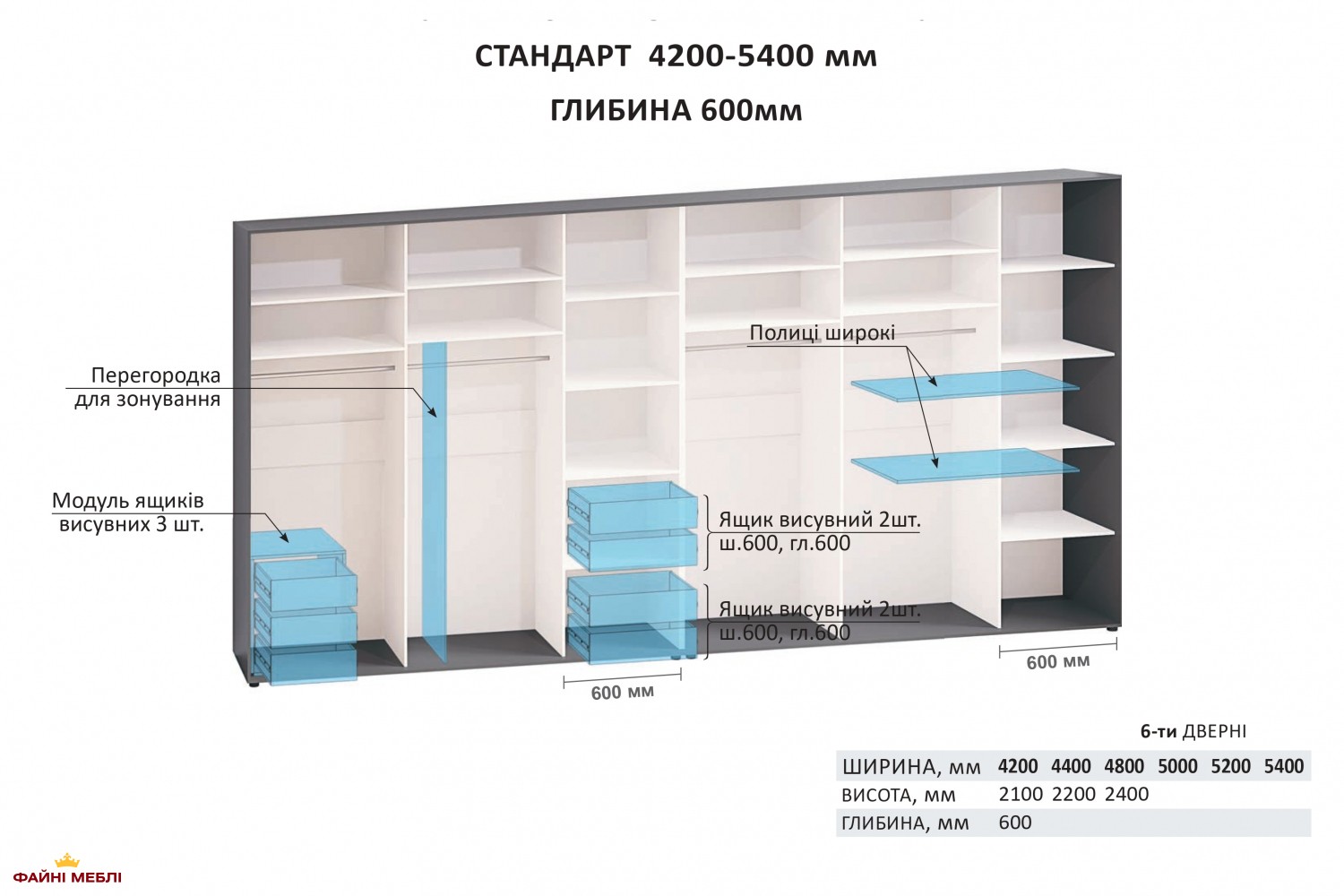 Шкаф-купе с 4 частей Комфорт мебель дуб беленый 6 дверный 500 см