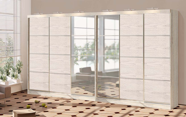 Шкаф-купе с 4 частей Комфорт мебель дуб беленый 6 дверный 540 см