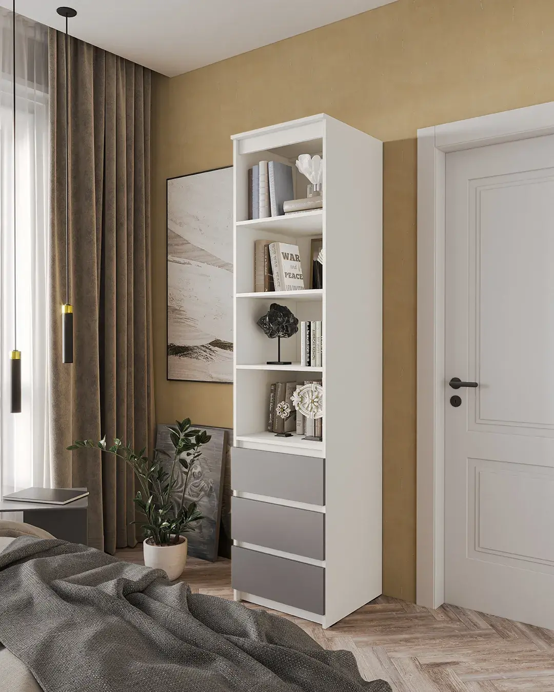 Шкаф Морели Т219 белый/антрацит с полками и ящиками 50 см
