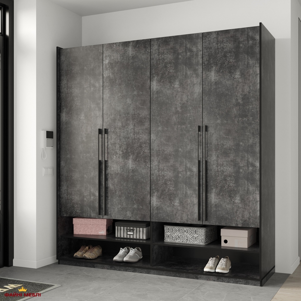 Шкаф Морели R-0008 Рамо 4 дверный бетон темный со штангами 197см