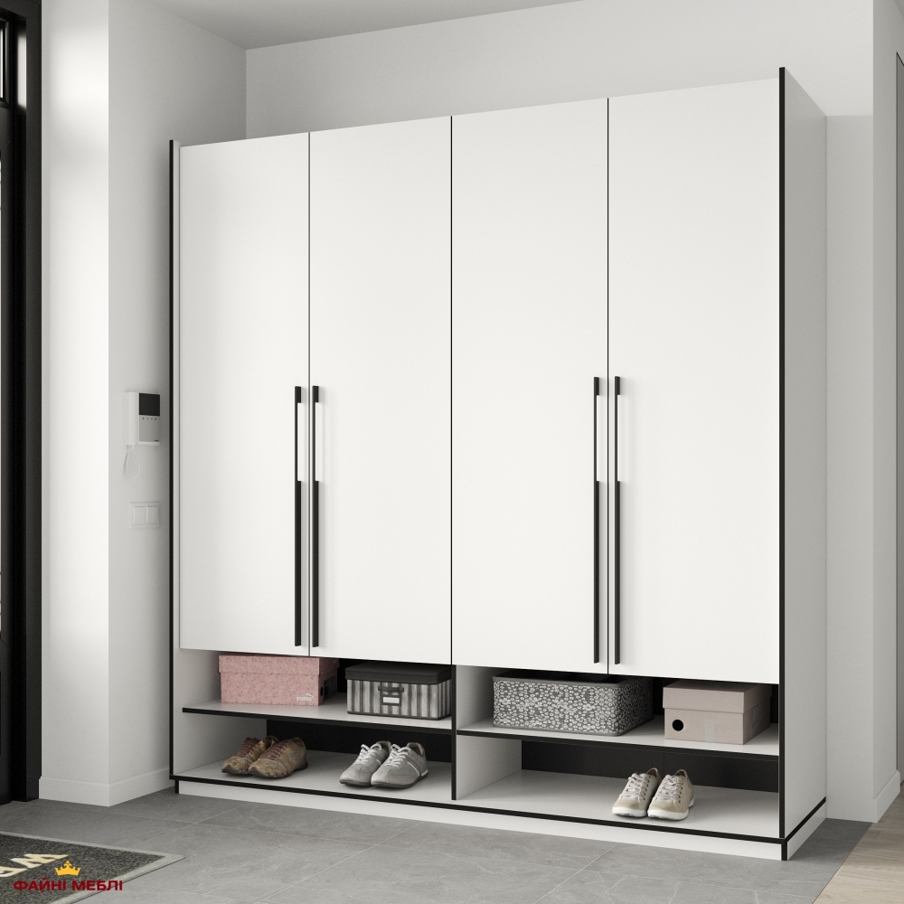 Шкаф Морели R-0008 Рамо 4 дверный белый со штангами 197см