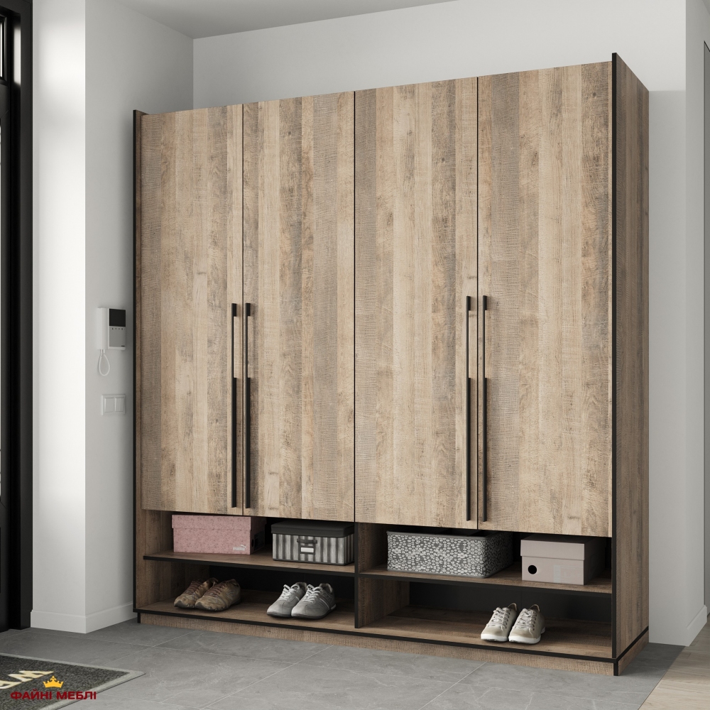 Шкаф Морели R-0008 Рамо 4 дверный дуб гранж песочный со штангами 197см