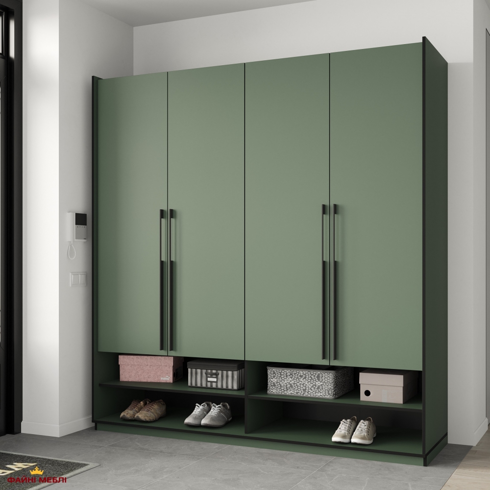 Шкаф Морели R-0008 Рамо 4 дверный зеленый дымчатый со штангами 197см