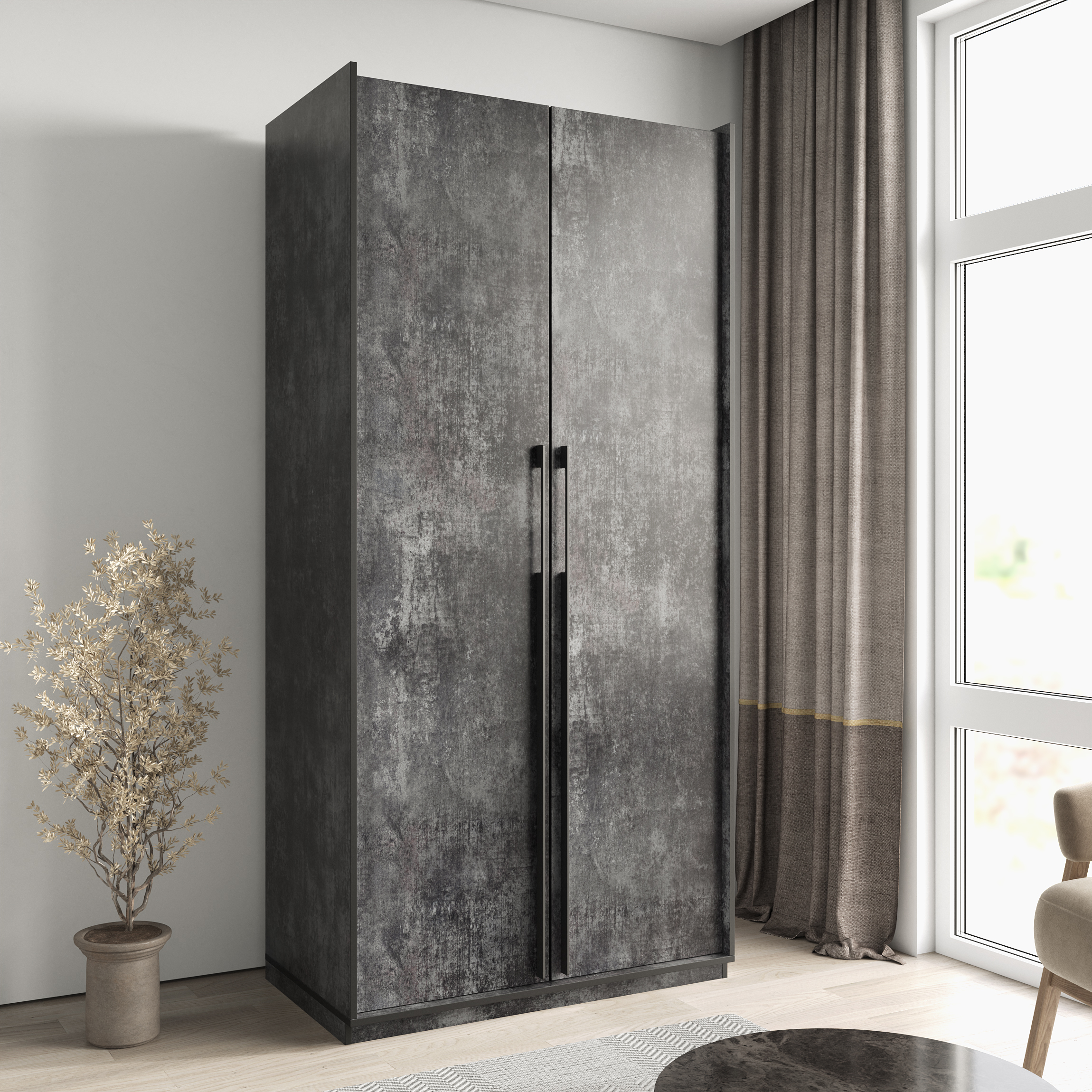 Шкаф Морели R-0014 Рамо 2 дверный бетон темный со штангой 100 см