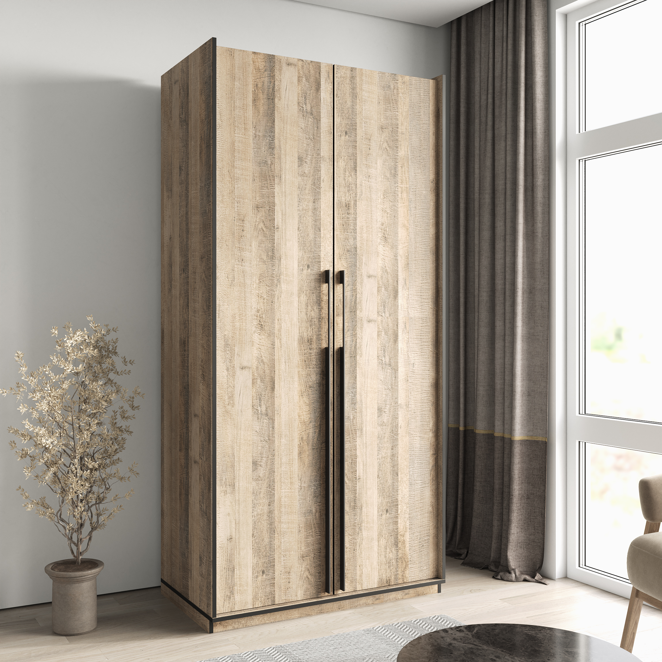Шкаф Морели R-0014 Рамо 2 дверный дуб гранж песочный со штангой 100см