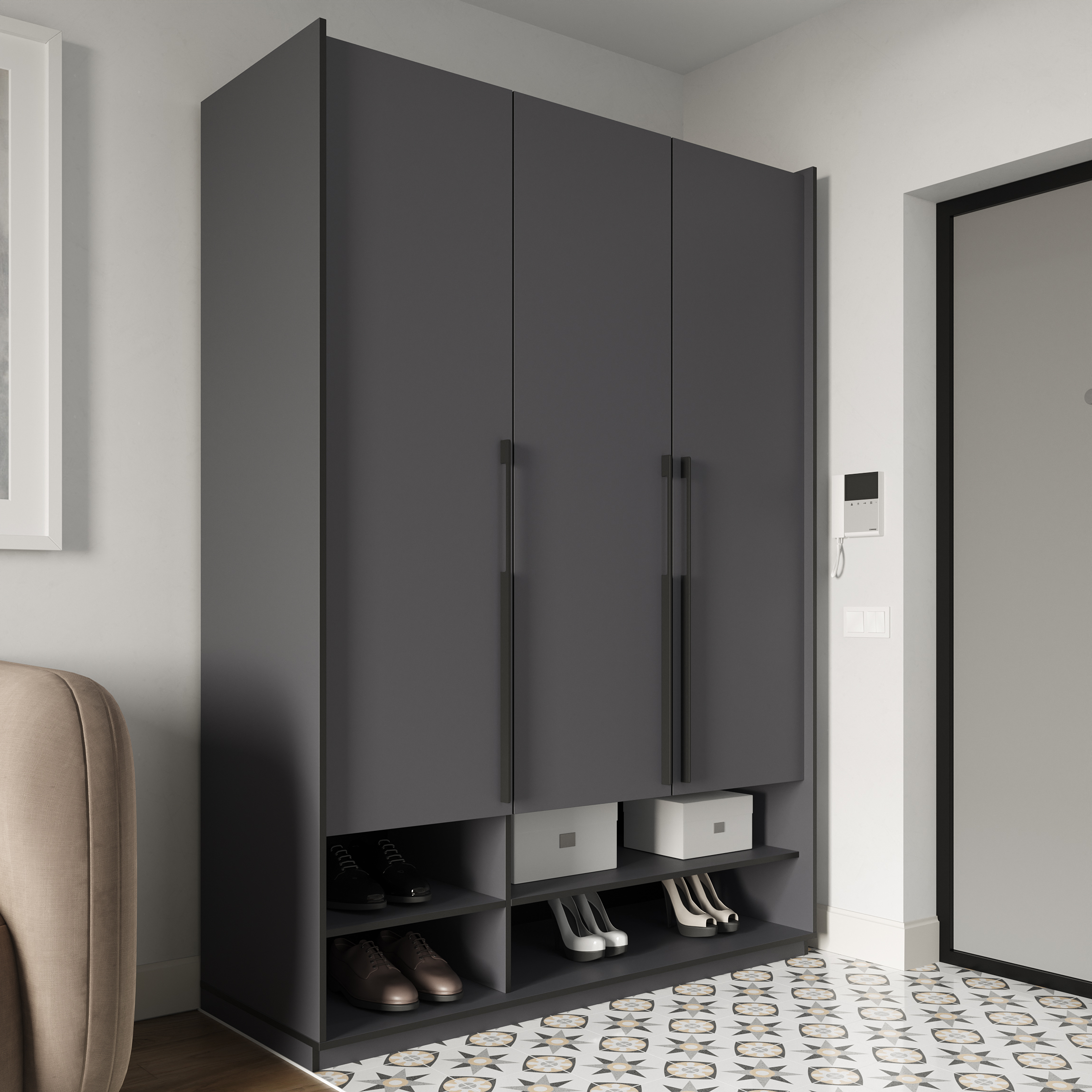 Шкаф Морели R-0006 Рамо 3 дверная антрацит со штангой и полками 150 см