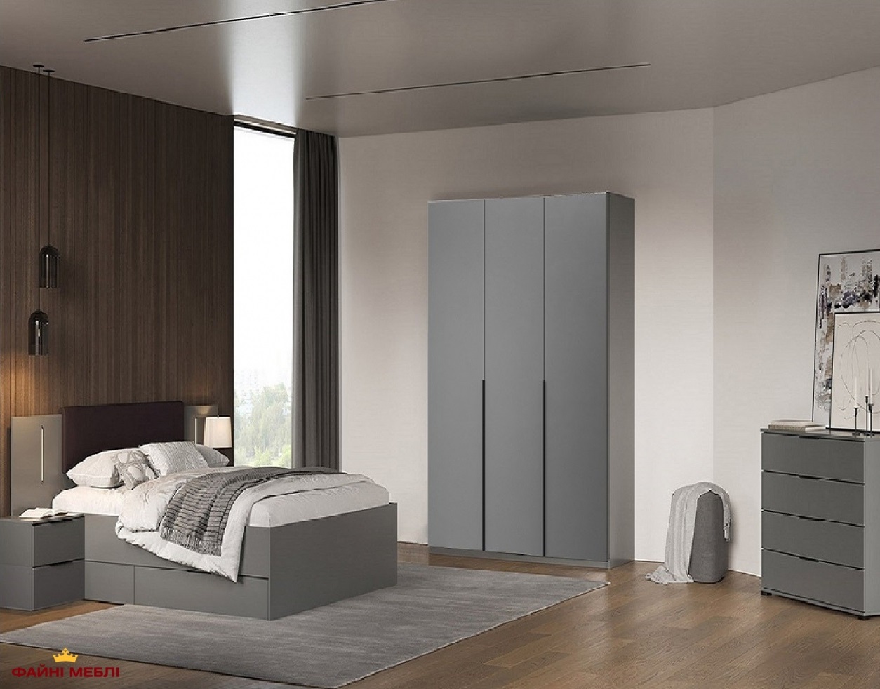 Современный стиль – лаконичный дизайн и графитовый цвет создают стильный, современный и аккуратный интерьер спальни.