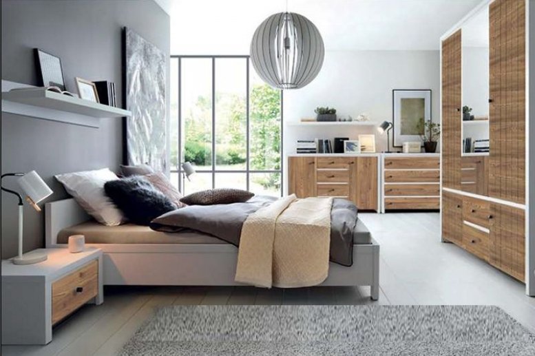 Комплект создаёт уютное и функциональное пространство: кровать обеспечивает комфортный отдых, тумба удобна для повседневных мелочей, а шкаф позволяет аккуратно хранить одежду и аксессуары.