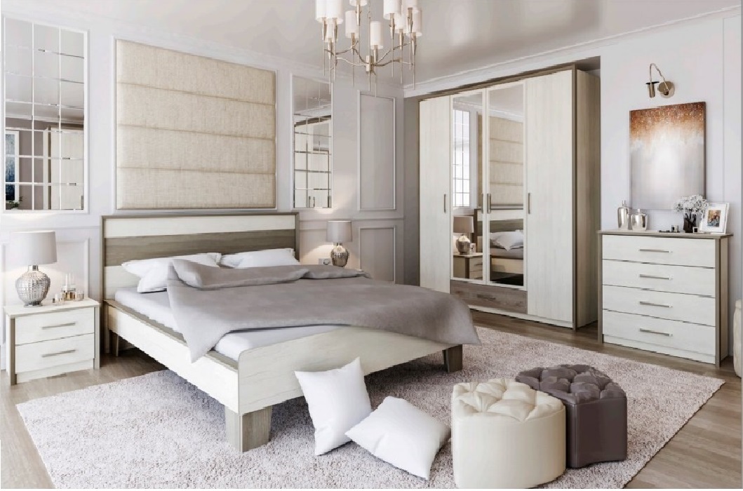 Элементы можно комбинировать или дополнять, сохраняя единый стиль и порядок в спальне.