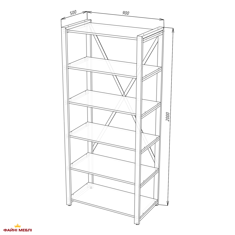 Стеллаж LOFT 900 Дуб Сонома / Чёрный мат MebliRoMax