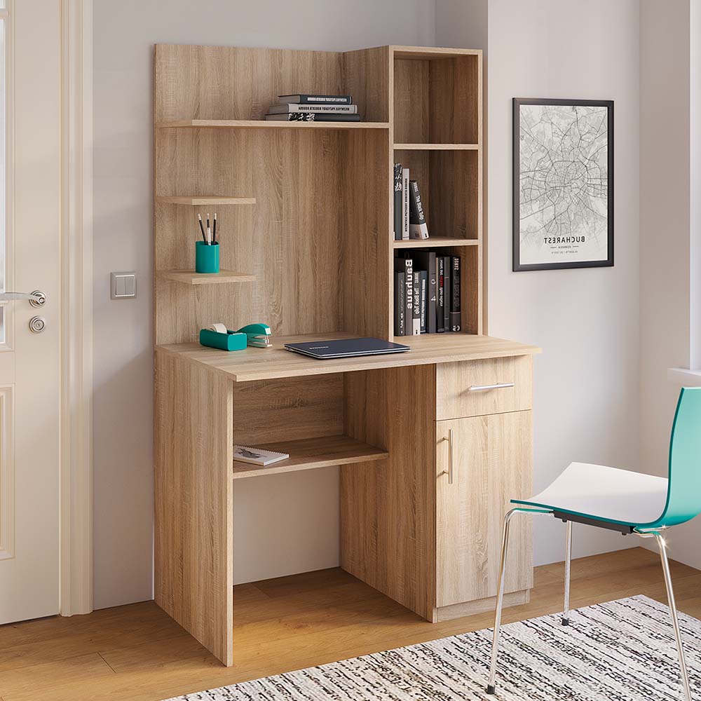 Письменный стол Е-6 — это практичное решение для тех, кто ценит порядок и функциональность. Стол сочетает удобную рабочую поверхность с продуманной системой хранения, что позволяет организовать комфортное место для учебы или работы дома. Теплый оттенок Дуб сонома создает выразительный акцент в интерьере и гармонично сочетается как со светлой, так и с контрастной мебелью.