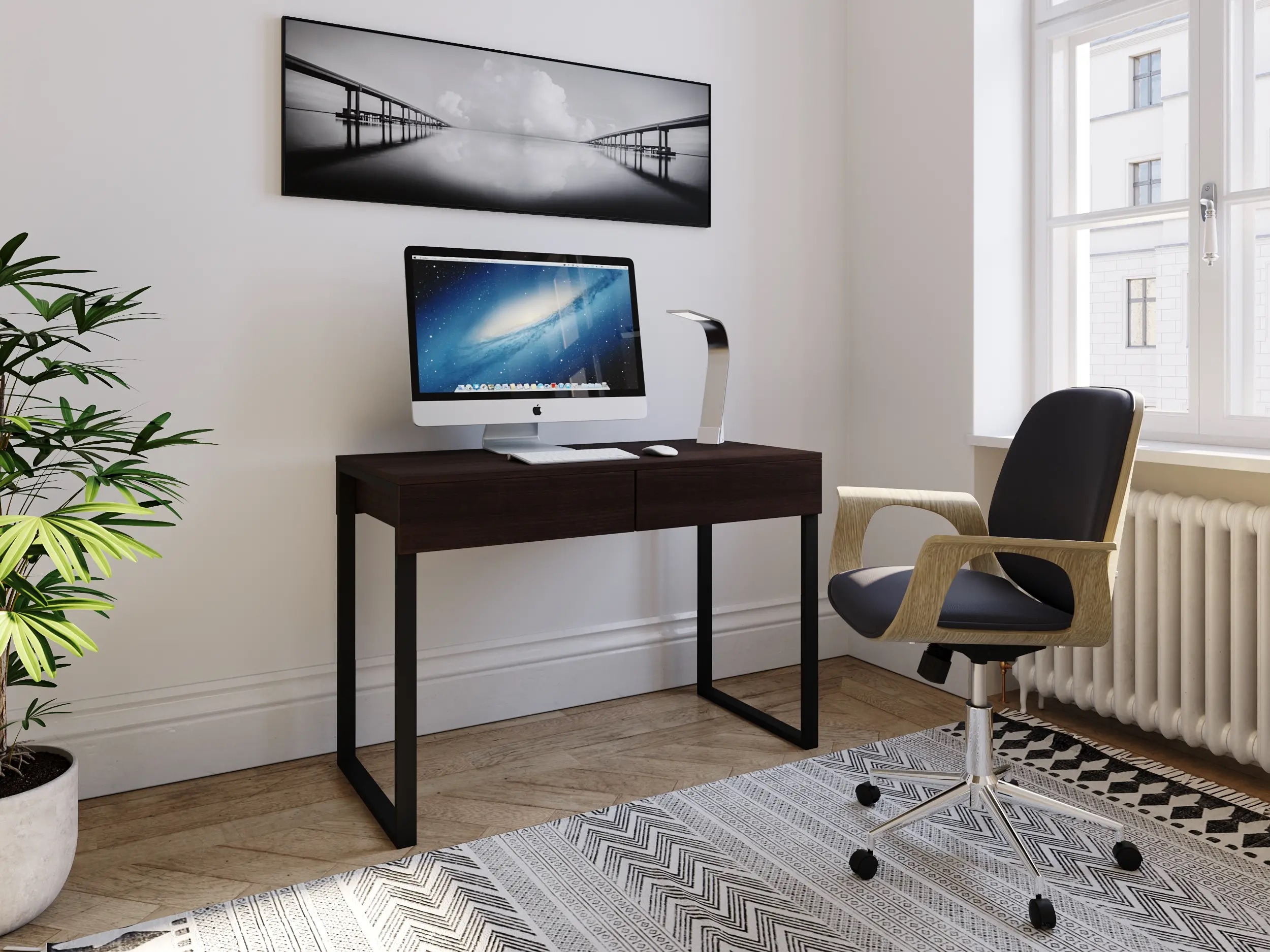 Конструкция стола сочетает прочный металлический каркас и ламинированную ДСП, что обеспечивает стабильность, долговечность и устойчивость к ежедневному использованию. Поверхность не боится царапин и легко очищается, сохраняя аккуратный внешний вид. Модель оснащена двумя выдвижными ящиками, которые позволяют организовать хранение документов, канцелярии и других необходимых вещей. Они обеспечивают удобный доступ к содержимому и помогают поддерживать порядок. Особенностью стола является выдвижная полка для клавиатуры, которая повышает комфорт при работе за компьютером и помогает рационально использовать рабочее пространство. Дополнительно предусмотрена ниша для системного блока или других вещей, что делает модель еще более практичной и универсальной. Столешница достаточной площади позволяет разместить компьютер, ноутбук, монитор и рабочие материалы, создавая комфортную зону для повседневной работы или учебы. Сочетание металла и древесной текстуры формирует стильный внешний вид, который идеально подходит для интерьеров в стиле лофт, модерн или минимализм. Стол поставляется в разобранном виде и комплектуется инструкцией и полным набором фурнитуры для монтажа.