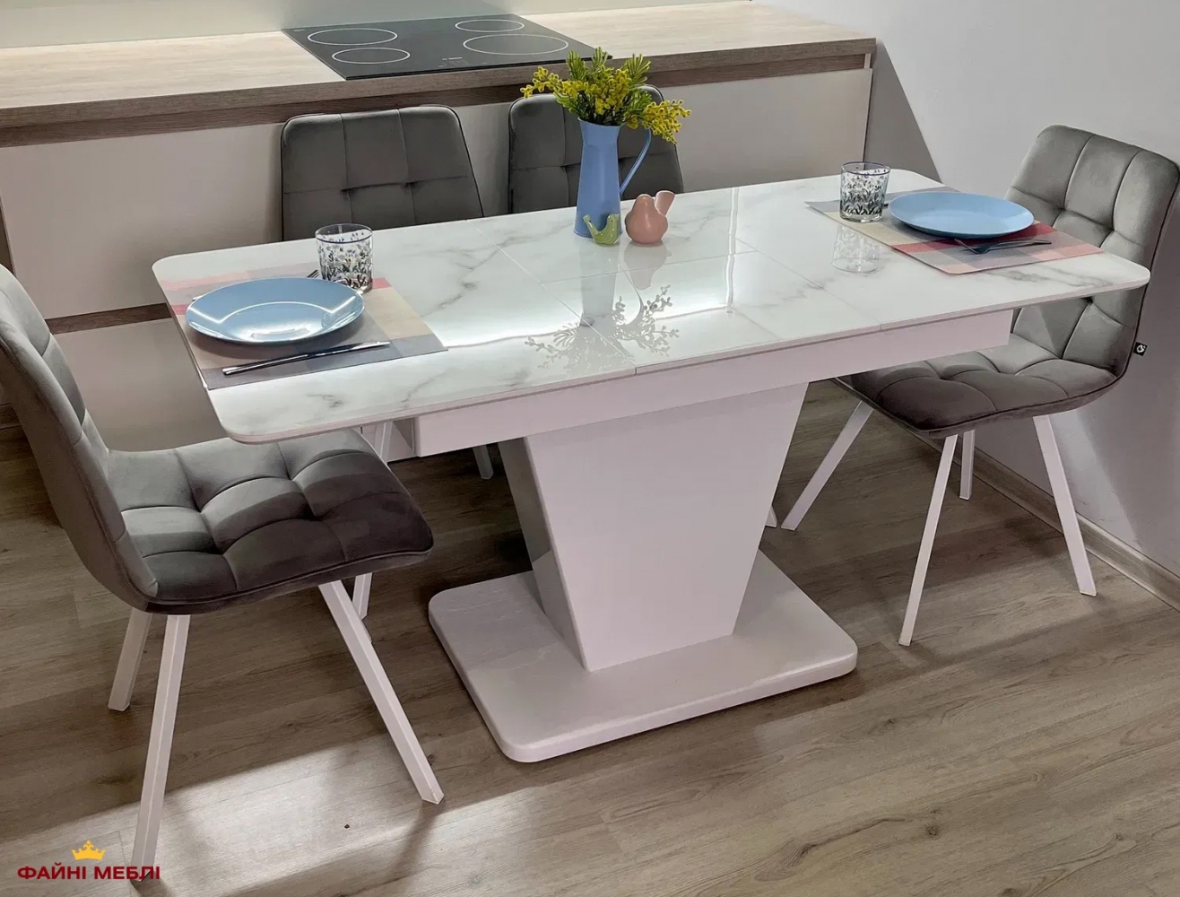 Стол изготовлен украинской фабрикой «Джем» — производителем современной мебели для дома. Предприятие специализируется на создании практичных, стильных и долговечных моделей для кухни, столовой и гостиной.