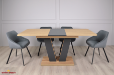 Стол изготовлен украинской фабрикой «Intarsio» — производителем современной мебели для дома. Предприятие специализируется на создании практичных, стильных и долговечных моделей для кухни, столовой и гостиной.