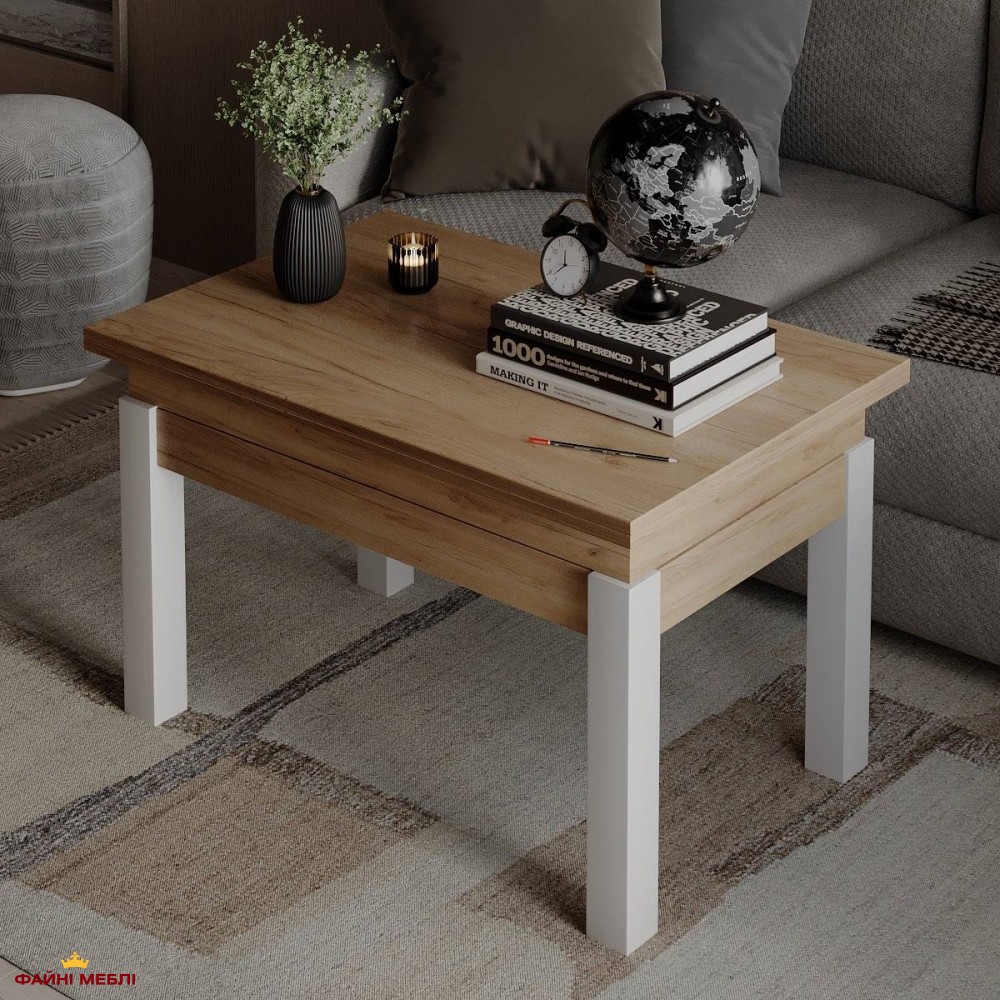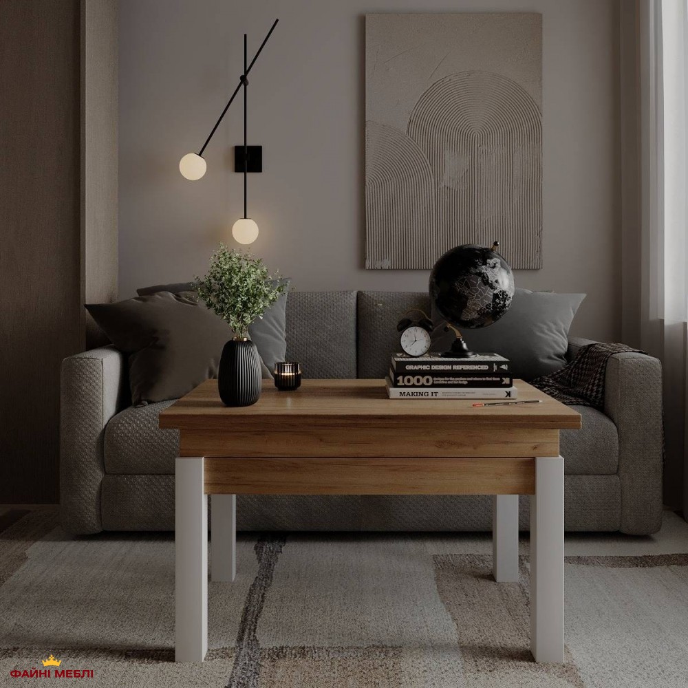 Стол-трансформер B-Fly Art In Head Дуб Крафт золотой / Белый бриллиант — это сочетание природной теплоты древесного декора и продуманной функциональности для современного интерьера. Светлый оттенок Дуб Крафт золотой формирует ощущение уюта и лёгкости, органично вписываясь в пространство гостиной или кухни, тогда как глубокие ножки цвета Белый бриллиант добавляют контраста и визуальной устойчивости. Конструкция выполнена из ЛДСП толщиной 16 мм, что обеспечивает прочность и долговечность в ежедневном использовании, а натуральные деревянные ножки гарантируют надёжную опору. В сложенном виде модель компактна и аккуратна, однако благодаря фразе механизм трансформации стол легко переходит в расширенный формат, меняя пропорции и открывая больше возможностей для семейных обедов, приёма гостей или работы дома. Это не просто журнальный столик, а гибкое решение, которое добавляет удобства и расширяет функциональность привычного пространства.
