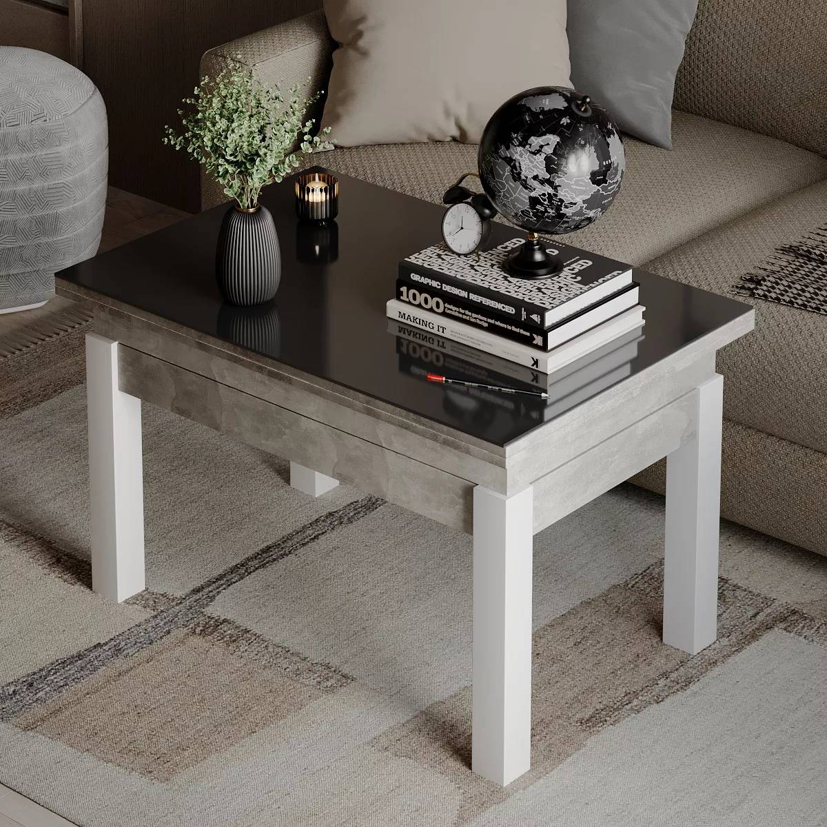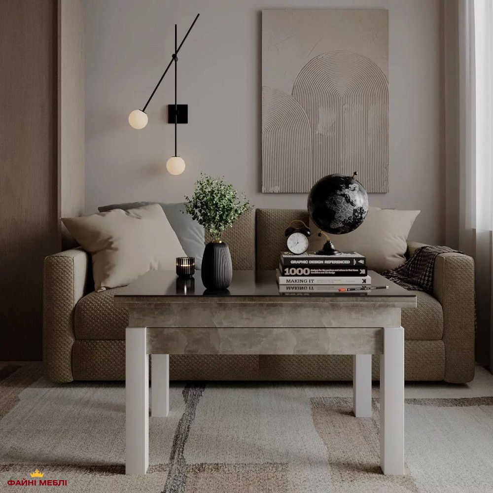 Стол-трансформер B-Fly Glass Art In Head в оттенке Ателье светлый с белыми ножками и контрастным графитовым стеклом выглядит сдержанно, но выразительно. Светлый корпус с мягкой текстурой создаёт нейтральный фон, который легко интегрируется в современные и скандинавские интерьеры, а тёмная стеклянная поверхность добавляет композиции глубины и чёткой геометрии. Белые деревянные ножки поддерживают цветовой баланс, формируя лёгкий силуэт и одновременно обеспечивая устойчивость конструкции. Столешница и каркас выполнены из ЛДСП толщиной 16 мм и дополнены закалённым стеклом, что гарантирует прочность и удобство в уходе. Надёжный металлический механизм из трубы и пружинной стали позволяет плавно менять конфигурацию стола. В сложенном формате это компактный журнальный вариант для повседневного использования, а благодаря механизму трансформации высота увеличивается с 51 до 75 см, а ширина — с 60 до 120 см, превращая его в полноценный обеденный стол. Такая модель станет практичным решением для квартир, где важно сочетание стильной эстетики и адаптивности пространства.