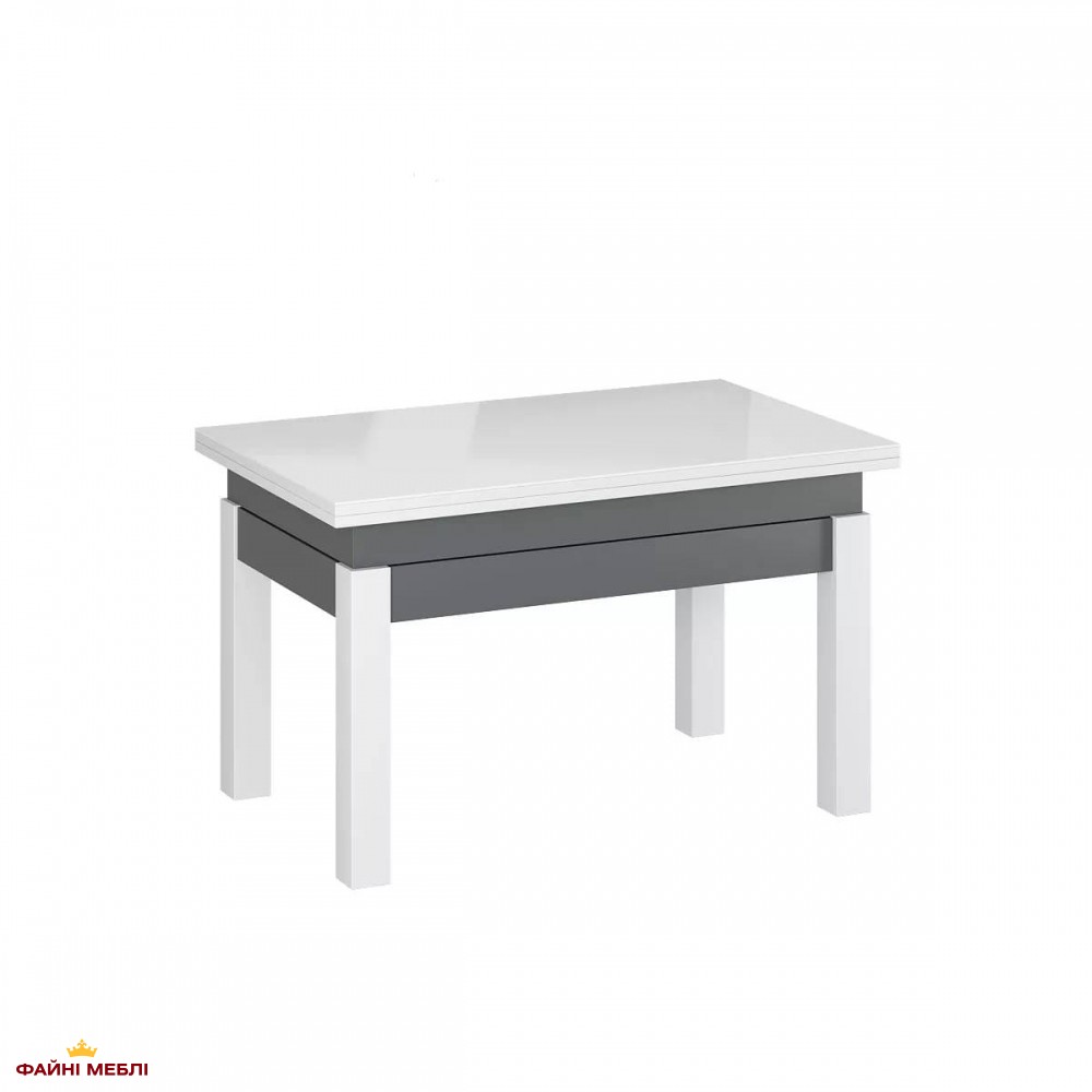Стол-трансформер B-Fly Glass Art In Head Графит/Белые ноги/Белое стекло