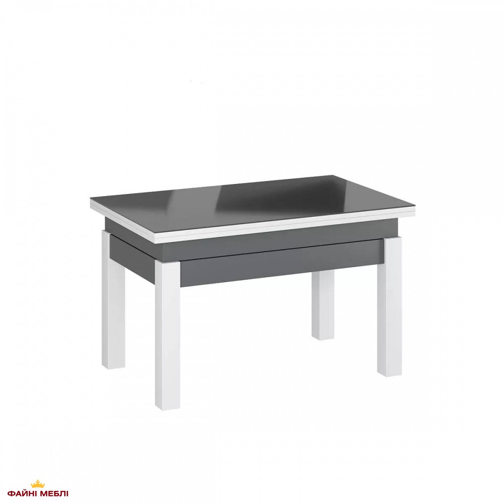 Стол-трансформер B-Fly Glass Art In Head Графит/Белые ноги/Графитовое стекло