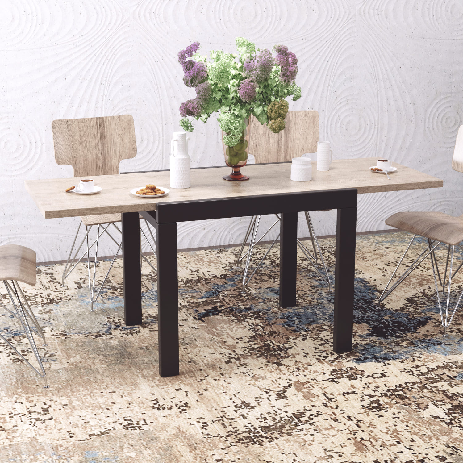 ЛДСП 32 мм — надёжный и практичный материал, отличающийся прочностью, устойчивостью к царапинам, влаге и механическим повреждениям. Оптимальная толщина 32 мм обеспечивает конструкциям стабильность, долговечность и эстетичный внешний вид. - Синхронный механизм — позволяет легко увеличить размер столешницы для большой компании.