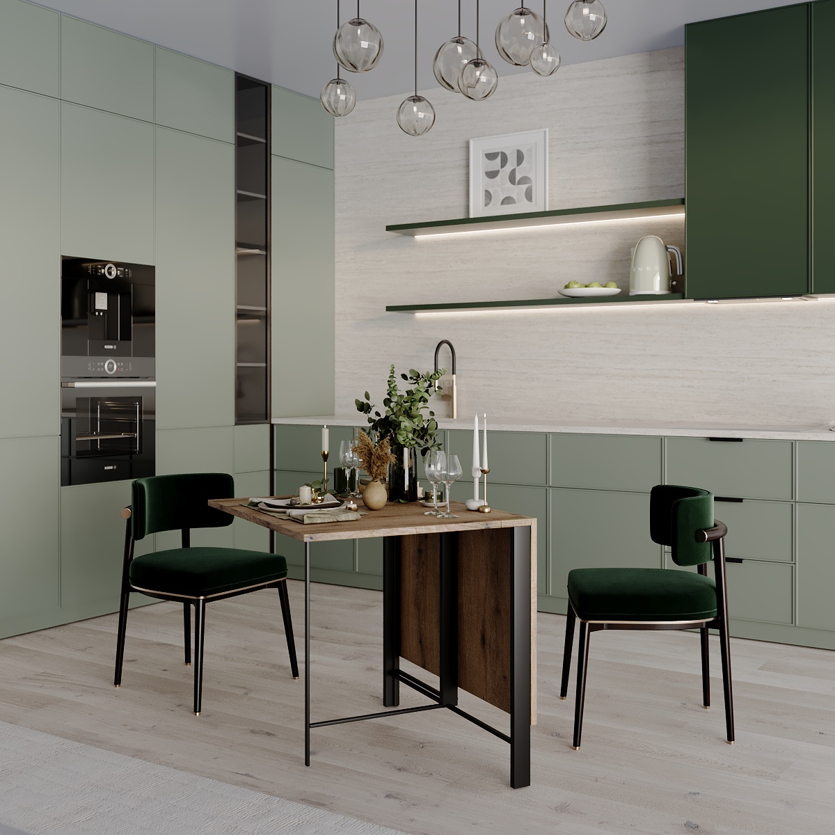 - Для небольшой кухни или квартиры-студии оптимальной будет модель размером 110–145 см — она компактна в сложенном виде и удобна для ежедневного использования.