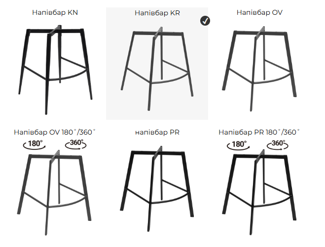 Каркас стула выполнен из прочного металла с покрытием устойчивой порошковой краской, которая защищает от коррозии и царапин. Сиденье выполнено из мягкого, приятного на ощупь материала — ткани или велюра высокой плотности, сохраняющего форму даже при длительном использовании. Обивка легко очищается, не выгорает на солнце и обладает повышенной износостойкостью. Стандартная опора KR.