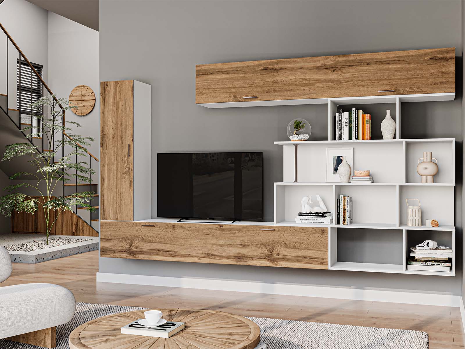 Рациональное хранение. Вы сможете удобно разместить технику, книги, декор и повседневные вещи — продуманная конструкция обеспечит порядок и лёгкую организацию пространства.