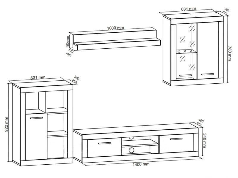 Комплект стенки Shark mini cостоит из следующих элементов: