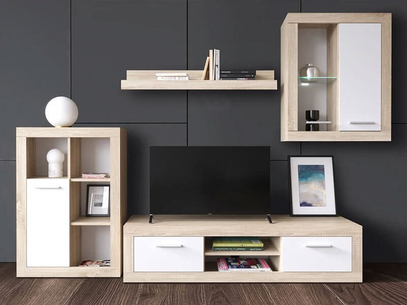 Тумба под телевизор RTV2K – 1 шт. (В/Ш/Г – 34/140/40 см, два открытых отделения, две откидные двери);